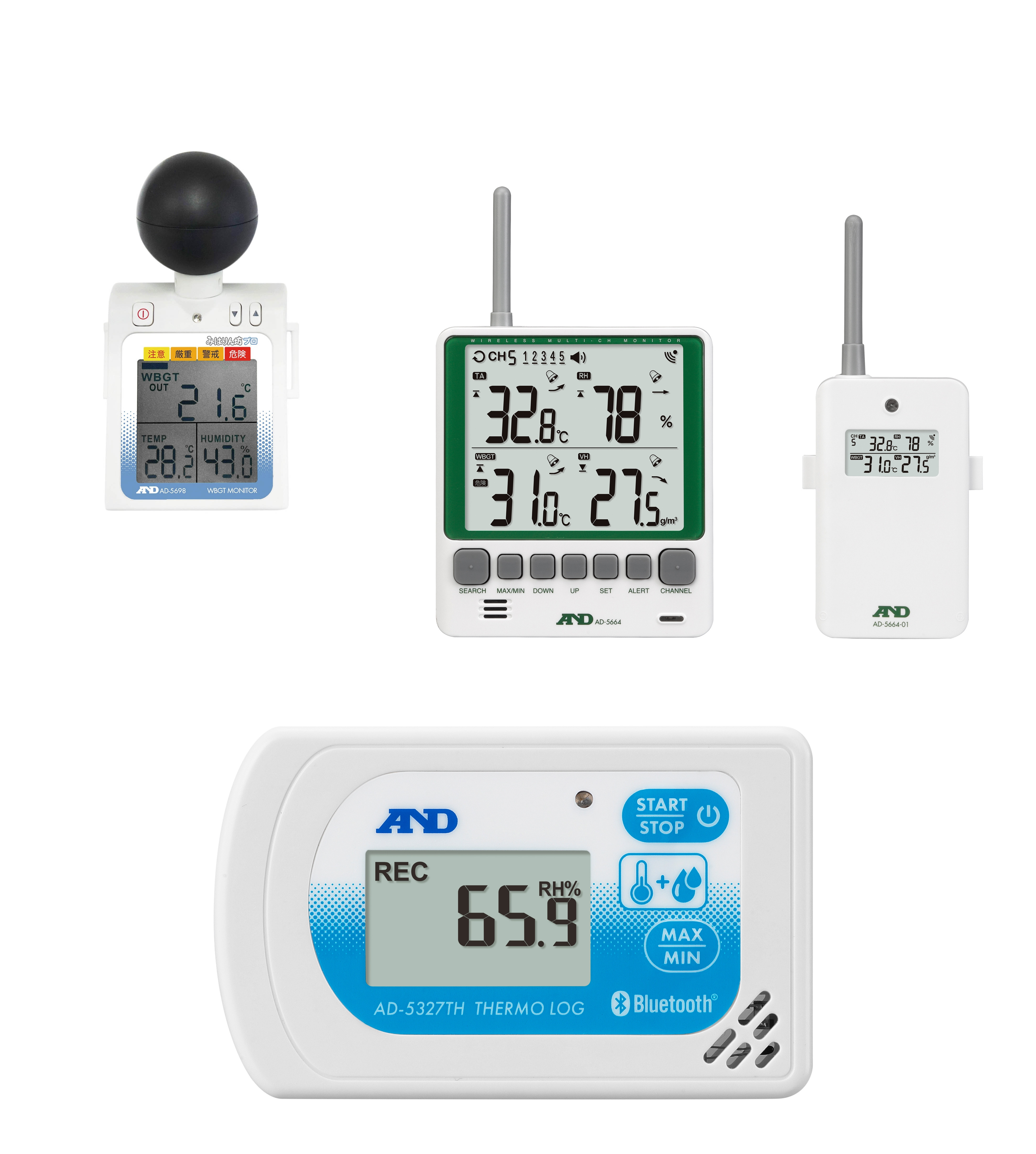 1、熱中症指数モニター AD-5698×2台(または後継モデル×2台)