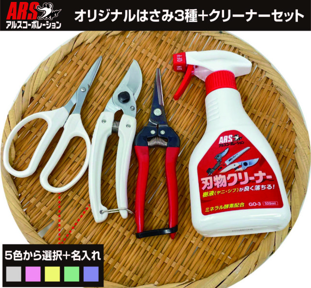 モニターさんになっていただく方には商品に指定の名入れを施したオリジナルはさみ3種+クリーナーセットをプレゼントします!